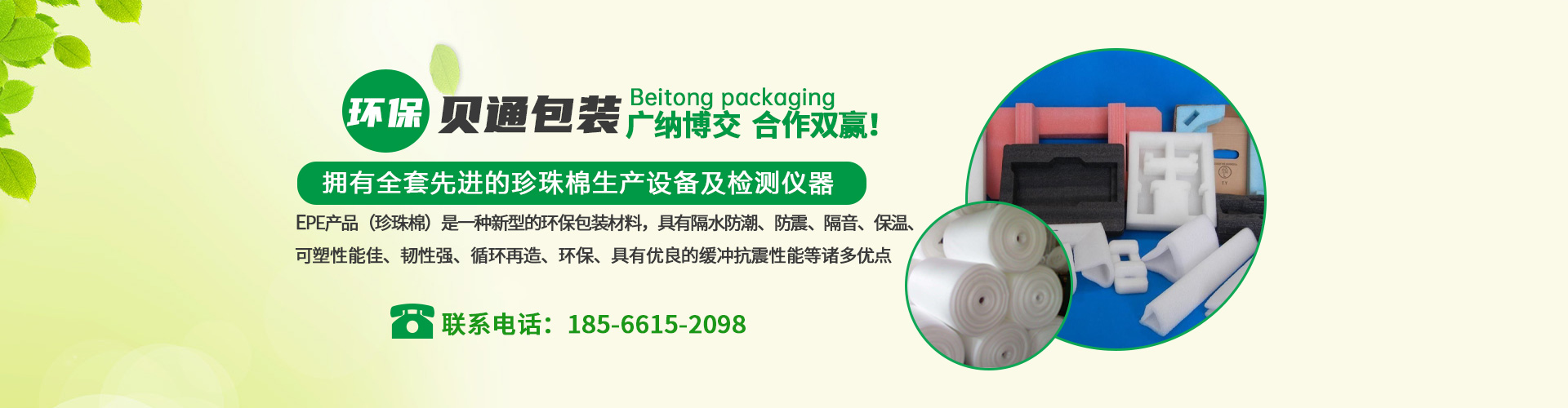 東莞市貝通包裝有限公司位于東莞市常平鎮(zhèn),交通便利。是一家集設(shè)計(jì)、生產(chǎn)、銷售、服務(wù)于一體的實(shí)體企業(yè),主要生產(chǎn)有:EPE珍珠棉,珍珠棉片材,貼合珍珠棉,珍珠棉異型材,成型珍珠棉等包裝產(chǎn)品。EPE產(chǎn)品(珍珠棉)是一種新型的環(huán)保包裝材料,具有隔水防潮、防震、隔音、保溫、可塑性能佳、韌性強(qiáng)、循環(huán)再造、環(huán)保、具有優(yōu)良的緩沖抗震性能等諸多優(yōu)點(diǎn),亦具有很好的抗化學(xué)性能。是傳統(tǒng)包裝材料的理想代替品。公司生產(chǎn)的產(chǎn)品符合ROHS要求,廣泛應(yīng)用于汽車、電子、玩具、五金、手袋、家具、電鍍、LED燈飾、玻璃制品、陶瓷、工藝品、醫(yī)療器材、凈水器、多媒體、家電、通訊設(shè)備等行業(yè)的各種形狀產(chǎn)品的包裝公司現(xiàn)有自己的設(shè)計(jì)團(tuán)隊(duì)、品質(zhì)部、銷售團(tuán)隊(duì)、運(yùn)輸團(tuán)隊(duì)、生產(chǎn)管理團(tuán)隊(duì),擁有全套先進(jìn)的珍珠棉生產(chǎn)設(shè)備及檢測(cè)儀器,配合科學(xué)的管理,為產(chǎn)品質(zhì)量提供強(qiáng)有力的保證,公司始終秉承“顧客至上,品質(zhì)優(yōu)良,信譽(yù)為本”的經(jīng)營宗旨!竭誠為廣大客戶朋友們服務(wù)!